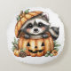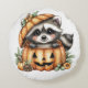 Cojín Redondo Sólo dando vueltas, Raccoon juguetón en calabaza