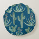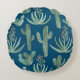 Cojín Redondo Suculentas y cactus saguaro en azul