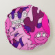 Add a splash of surreal fun with this round pillow featuring quirky cartoon creatures in pink and purple. Perfect for kids’ rooms, creative spaces, or bold gift ideas.