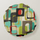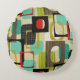 almohada de 16" de estilo rodado con una imagen de los 50, a ambos lados, de marcos negros, marrones, rojos y mostaza, rectángulos con motivos negros y amarillos, y cuadrados turquesa y blanca en el bronceado. Vea la almohada de lanzamiento cuadrado coincidente, almohada de acento y almohada de cubo. Vea toda la colección de almohadas Nifty 50s en el DECOR| Sección de almohadas.