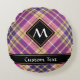 Tartán rosa, amarillo dorado y azul. Patrón sin foco. texto personalizado y monograma.