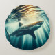Cojín Redondo Tiburón en el mar azul profundo y la luz del sol