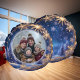 La temporada de los Navidades - una época llena de asombro, alegría, esperanza, expectativas y sorpresas. Esta almohada presenta un torbellino dorado de copas de nieve en el cielo azul de la noche sobre el bosque invernal con una imagen de su familia, mascota o lo que le gusta. Bonita decoración para tu casa y también una maravillosa idea de regalo para los abuelos. Foto personalizada.
