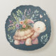 Cojín Redondo Tortuga de Jardín de Campo Acuarela