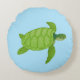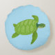 Cojín Redondo Tortuga marina verde sobre fondo turquesa