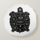 Tortuga negra artística moderna sobre Pillow redondo blanco. El texto se puede personalizar.