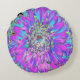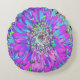 Cojín Redondo Trippy Resumen Aqua, Lime Green y Purple Dahlia