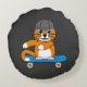 Cojín Redondo Un gato Naranja lindo en un Personalizado de skate