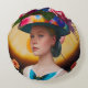 Cojín Redondo Una dama con un gorra floral