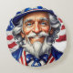 El tío sonriente Sam USA Icono estadounidense usando un traje americano y una bandera norteamericana ondeando al fondo