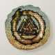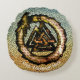 El vértice (antiguo valr nórdico, 'guerreros asesinados' y nuez, 'nudo') es un símbolo que consta de tres triángulos entrelazados. Aparece en una variedad de objetos del registro arqueológico de los antiguos pueblos germánicos. El nogal compuesto es de la era moderna. Se desconoce el término utilizado para el símbolo durante su empleo histórico. ~wiki Scholars ha propuesto una variedad de explicaciones para el símbolo, algunas veces asociándolo con el dios Odin, y ha sido comparado con el símbolo de tres cuernos encontrado en la Piedra Snoldelev del siglo IX, con la que puede estar relacionado[1]. El avellán recibe un uso esporádico en la cultura popular moderna y de nuevo se asocia con el paganismo germánico a través de su resurgimiento moderno, Heathenry. El vaquero (pronunciado "VAL-knoot") es uno de los símbolos más discutidos pero enigmáticos de todos los símbolos que aparecen en relación con la mitología nórdica. Visualmente, se compone de tres triángulos entrelazados. Arqueológicamente, aparece en varias pistas de aterrizaje y piedras conmemorativas pictóricas que datan de la Edad de Viking y se encuentran en la isla sueca de Gotland, así como en las fosas del entierro marítimo de Oseberg en Noruega[1]. Su nombre no se menciona en ninguna fuente de época; valknut es una palabra compuesta moderna noruega que significa "nudo de los caídos en la batalla" y fue introducido por noruegos que vivieron mucho después de la Edad de Viking.[2] ~http://norse-mythology.org/symbols/the-valknut/ El ouroboros o uroboros ( ˌjʊ ræbɒ rarlos) es un símbolo que representa un serpiente o dragón comiéndose su propia cola. Vida eterna~ Los antecedentes son de la colección Belcher Mosaic Glass Co Collection Belcher Mosaic Glass Co., una empresa de vidrio de Nueva York, que presentó sus mosaicos de vidrio de vanguardia en el catálogo de la empresa de 1886. Henry F. Belcher fue un pionero en la fabricación de vidrio, con 22 patentes, cuatro por sus procesos innovadores, que según él "concentran la luz y la tiran a la habitación con peculiar brillantez"