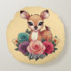 Cojín Redondo Venado bebé con Rosas y follaje verde