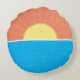 Tanto si eres un amante de los tiburones como si le tienes miedo a los tiburones, esta graciosa almohada de verano con el sol abrasador sobre el agua llena de tiburones es una forma linda de honrar su presencia. Mantenga el texto del sol y el tiburón, cambie las palabras o suéltelas para una simple pero divertida almohada redonda con temática veraniega en azul minimalista, naranja y amarillo. Hace un divertido pop de color para la casa de la playa. ♡ Idyllfire