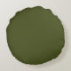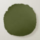 Una almohada redonda oscura y sólida de color "verde del ejército". El verde del ejército es un verde-amarillo profundo. Haga clic en "Personalizar" para cambiar de color o añadir un patrón o diseño. Código hexadecimal del producto: #4b5320