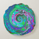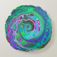 Cojín Redondo Verde Retro, Rojo y Magenta Remolino Abstracto Gro