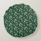 Cojín Redondo Vibrant Green Pattern with Yellow Flowers & Leaves