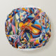Cojín Redondo Vibrant Symphony: Abstract Violinist Art