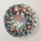 Adorn your space and stationery with the delicate, romantic beauty of this vintage-style floral wreath. This exquisite design features a lovely circular arrangement of soft pink flowers and berries nestled among dusty blue-green leaves, all tied with an elegant pink satin bow.