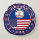Insignia del estado de Virginia con bandera de Virginia y bandera de los colores de Estados Unidos, forma redondeada. Emblema de Virginia. Sello de Virginia. Colección de Estados Unidos.