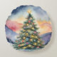 Cojín Redondo Winter Christmas Tree Snowy Sunset Scenery