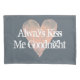 SIEMPRE ME BESÓ funda DE almohadas vintage BUENA NOCHE. Colores gris y rosa coral. Rústico diseño de tipografía descolorida con pintura de acuarela rosa de coral que adoran el corazón. Idea de regalo para el compromiso, recién casados pareja boda, novia y novio, marido y mujer que conviven, matrimonio, etc. Elegante decoración de casa de moda de campo para un hermoso dormitorio. Cuidada funda de almohada nocturna de buen personalizado para la cama. Decoración de moda y accesorios de bonito para nueva casa. Fondo de color gris o personalizado. Añade tu propio texto divertido, dicho personalizado o cita inspiradora. Disponible en diferentes tamaños.