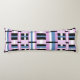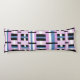 Esta almohada presenta un toque moderno en tonos rojizos, azul pizarra y blanco y negro.