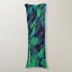 El patrón original, abstracto de tela en este Body Pillow fue creado a partir de una fotografía original de HomeWare de un árbol real de poinciana. Algunas de las hojas tropicales del árbol están bajo la luz del sol, en verdes amarillos brillantes. Otras están a la sombra, en tonos azules, desde el agua hasta el verde azulado profundo, con toques violetas. El fondo es casi negro. El diseño tiene una textura general de tela.