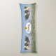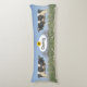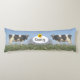 Elegante y moderna vaca negra y blanca en la almohada azul celeste Cuerpo. El texto se puede personalizar.