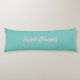 Una almohada corporal de bonito verde azulada y tranquilizante con letras rosadas de burbujas. Hemos configurado una plantilla para que puedas personalizar más fácilmente las palabras "Sweet Dreams" a tus propias palabras. La cubierta de algodón es depurable en seco/manchado. Hay otras opciones de tela con diferentes washabilidades.