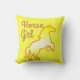 almohadas de tiro personalizadas con un gráfico de caballo y el dicho, Chica de caballo escrito en letra de guión. Estas almohadas con temática de caballo harían grandes regalos para los chicas que aman los caballos.