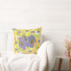 Cojines decorativos de Primavera. Imagen espejo de flores de primavera sobre un fondo amarillo moteado pálido.