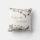 Diseñadora personalizado del Día de la Madre lanza almohada con floridos elementos de diseño gráfico en color púrpura y dorado y texto que dice "La familia es de lo que se trata" que puedes personalizar con tu propio mensaje. Diseñado para mamás, abuela o una bisabuela que todos aman y admiran. Los colores son violeta, dorado y blanco.