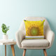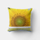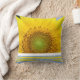 Hermosas almohadas de diseño con una foto de primer plano de un girasol con rayas amarillas y azules en el fondo.