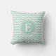 Un Seafoam lindo verde y Cojín decorativo blanco del monograma de Chevron que se modificará para requisitos particulares y personalizado con sus iniciales.
