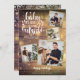 Un elegante diseño de vacaciones de colage de 4 fotos rústicas para que lo personalices con tus fotos favoritas enmarcadas en dorado, mensaje, nombres y año en un fondo de madera rústica. El reverso presenta copos de nieve que caen sobre un fondo de paneles de madera a juego. Diseñado por Thisisnotme©