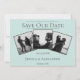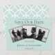Anuncia la fecha de tu boda a amigos y familiares con este moderno Anuncio de fecha de boda con colaje de 3 fotos. El diseño del anuncio cuenta con tres espacios para fotos de la feliz pareja, un diseño de texto limpio y un patrón de diamantes elegante en la parte trasera.