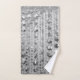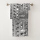 En este elegante juego de toallas de baño se encuentran las cuerdas de las perlas, con un purpurina sobre una cinta de plata, en la gran toalla donde se puede personalizar. Tomas de moda elegantes.