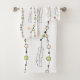 El diseño divertido y de moda presenta cuerdas estilo Boho de abalorios y plumas en tonos suaves sobre fondo blanco