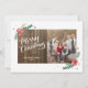 Añada un toque festivo adicional a sus saludos de vacaciones con esta tarjeta de 1 foto, con obras de arte de caligrafía con letras a mano y follaje dibujado a mano, todo sobre un fondo rústico de madera.