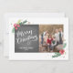 Añada un toque festivo adicional a sus saludos de vacaciones con esta tarjeta de 1 foto, con obras de arte de caligrafía con letras a mano y follaje dibujado a mano, todo ello sobre un fondo de pizarra de moda.