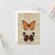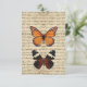 Dos mariposas marrones y rojas en un fondo de papel antiguo. Añade fácilmente tu propio texto en el menú personalizar para hacer un regalo único.