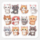 Esta imagen es una continuación de la encantadora serie de pegatinas felinos, con una adorable variedad de gatitos personalizados en varias poses juguetonas. Cada gatito tiene su propio patrón de color y expresión, lo que le da vida a la naturaleza lúdica y curiosa de estos queridos mascotas. Desde la mirada inquisitiva de un tabby gris hasta la dulce inclinación de la cabeza de un gatito naranja y blanco, esta colección captura la sustanciosa y alegre esencia de gatitos que encantan a los amantes de los gatos en todas partes.