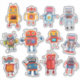 Apártate para divertirte retro con nuestra "colección de Pegatinas de reunión de robots", que presenta una original alineación de diseños de robots en colores brillantes y juguetones. Perfecto para entusiastas de la tecnología y coleccionistas, estos brillantes pegatinas le agregan un ambiente fresco y vintage a cualquier superficie.