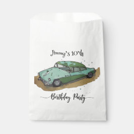 Get ready to cruise into fun with our charming birthday collection, featuring a cool illustration of an old antique two-toned green and lime green sedan. This unique theme offers a nostalgic touch, perfect for celebrating your little boy with timeless appeal and a nod to classic cars. Every piece in this collection is designed to capture the sweet adventure of childhood, blending vintage style with a fresh, artistic feel for a truly special event.