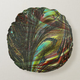 Cojín Redondo Plumas de pavo real cruzadas oscuras