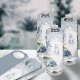 En esta colección se utiliza un tipo de letra de firma manuscrita combinado con marcos geométricos, fondos brillantes y flores exuberantes para establecer un tono cálido e íntimo para su boda. La etiqueta de colgador de botellas mostrada aquí, con su disposición floral en azul polvoriento a la moda, también tiene una plantilla para añadir fácilmente las iniciales de la novia y el novio y la fecha del boda. Busque ID889 para ver todos los productos de este conjunto de bodas.