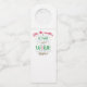 Etiquetas de botella lindas para la temporada navideña. Las palabras, 'El clima es tan espantoso, pero el vino es tan delicioso' están hechas en un texto decorativo en rojo, verde y dorado, para las fiestas.