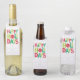 Diseñado para coordinar con la tarjeta y colección de decoración de Felices Fiestas de Lea Delaveris Design, esta etiqueta de botella presenta un esquema de colores alegre y brillante junto con divertidas letras e ilustraciones a mano. Las letras son rojas, verdes y lima y también tienen un adorno de Navidad y un árbol como letras. Los espacios en blanco le permiten personalizar cada etiqueta. La parte posterior es un patrón de estrella dorada coordinado.