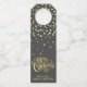 NewParkLane - Colgador de etiqueta de vino de Navidad Glamuroso, con un deseo de Feliz Navidad en tipografía/caligrafía de pincel elegante en falso dorado, con confeti dorado sobre un fondo gris oscuro.