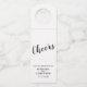 Añada un toque personal a su boda con un colgador de botellas boda de escritura moderno. Este colgador de botellas incluye el título 'Cheers' en letra de escritura moderna en negro con nombre y fecha en letra moderna sans serif en fondo blanco.
